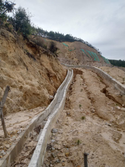 礦區(qū)水文地質(zhì)條件屬簡單類型,大氣降水為采場充水的主要來源;采用的山坡露天臺(tái)階開采,可自然排水。因此礦山防排水方案簡單。礦山采用的山坡露天臺(tái)階開采,各臺(tái)階可自然排水。礦山采場防水方式按照設(shè)計(jì)在采場外圍挖設(shè)有截洪溝,坡度根據(jù)實(shí)際地形而定且均大于1%。水溝斷面為漿砌梯形結(jié)構(gòu),規(guī)格為:下寬0.3~0.4m、上寬0.5~0.6m、深0.4m。采場排水良好,防洪溝設(shè)置能滿足實(shí)際排水需求。